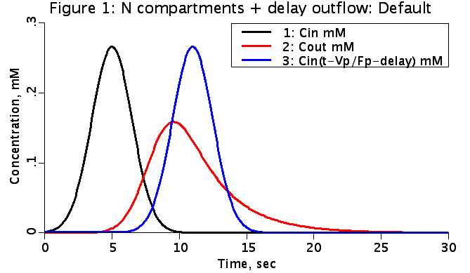 Computes N compartment models in series, each with volume = Vp/N, and with an added delay.