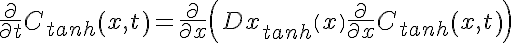 Two slabs with different diffusion coefficients are placed next to each other. They are insulated along their lengths, but exposed at their ends. The discontinuity in diffusion coefficients where the slabs meet is modeled by a continuous function over a single spatial step. It is essential that the functional equation for the discontinuous diffusion coefficient be represented by a continuous function for the partial differential equation solvers. Two approaches are given: 1.) The diffusion is given as a piecewise continuous function joining the two different diffusion coefficients and linearly changing value from D1 to D2 from b-x.delta/2 to b+x.delta/2. 2.) The diffusion is given by a smooth hyperbolic function. The analytic steady state solution is from the problem where the diffusion coefficients form a discontinuous function. The solution for the Steady State Problem is derived from CanalyticSS(x) = if (x<=b) C1*x+C2 else C3*x+C4, where the coefficients C1, C2, C3, and C4 satisfy at x=x.min: C1*x.min + C2 = Cleft at x=b: C1*b + C2 = C3*b +C4 (concentration is continuous at x=b) D1*C1 = D2*C3 (flux on both sides of x=b are in equilibrium) at x=x.max: C3*x.max + C4 = Cright. See Notes for Figure description